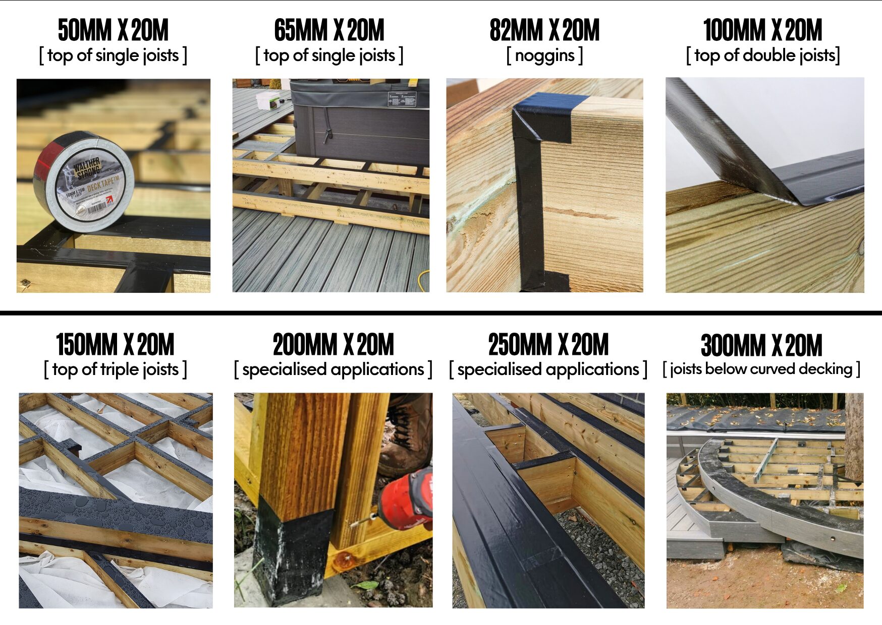 For full timber protection use alongside HD Timber Coating for the hard to tape areas. See the graphic below for a breakdown of what product should be used where on a full decking system